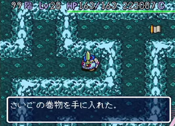 もっと不思議のダンジョンでは、”さいごの巻物”もセットで持ち帰る必要がある。そのため”さいごの巻物”と”しあわせの箱”で、貴重な持ち物枠が2枠埋まってしまうのが厳しい。